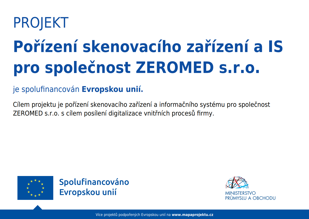 Projekt "Pořízení skenovacího zařízení a IS pro společnost ZEROMED s.r.o." je spolufinancován Evropskou unií.